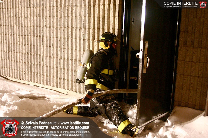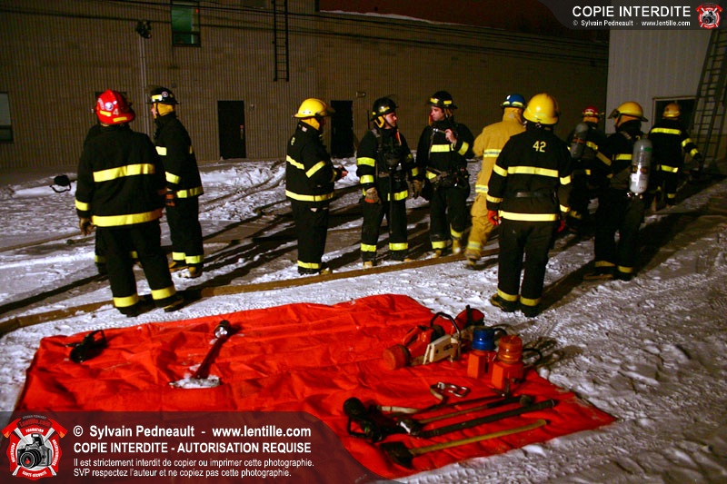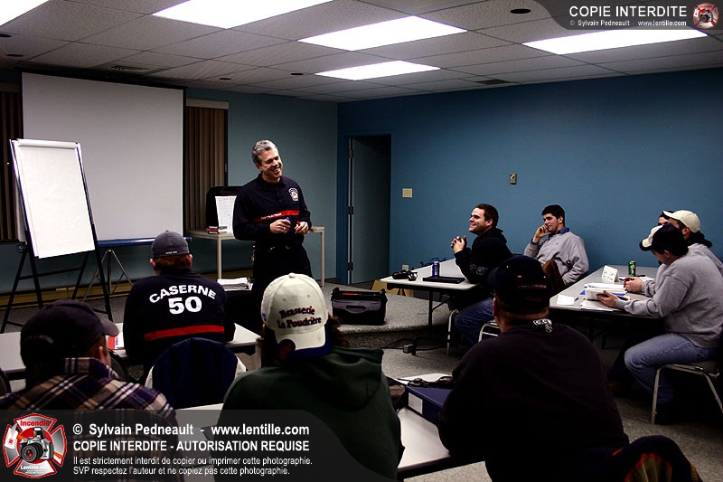 Le Centre de Formation Régional de Saint-Hyacinthe donnait une formation en intervention incendie, composée d'une partie théorique et de deux simulations extérieures.