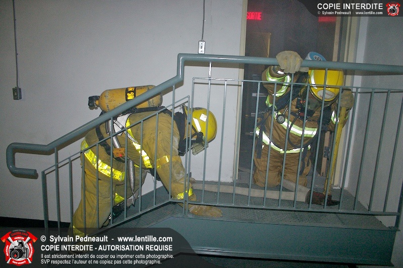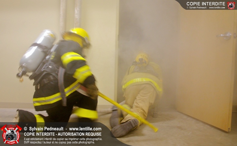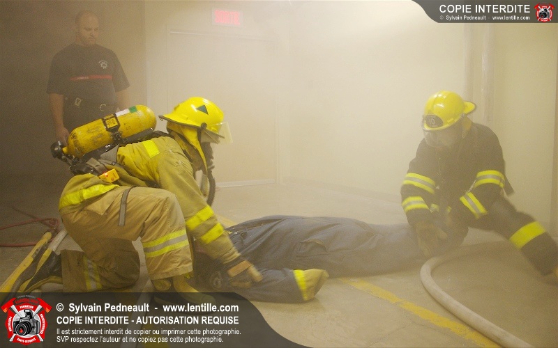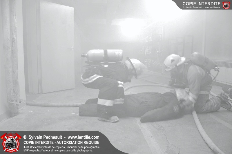 Des étudiants du programme Pompier I au CFR de Saint-Hyacinthe suivent leur formation de recherche & sauvetage.