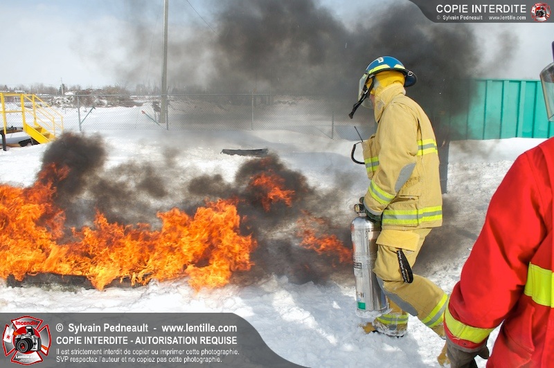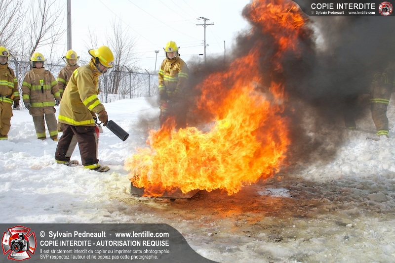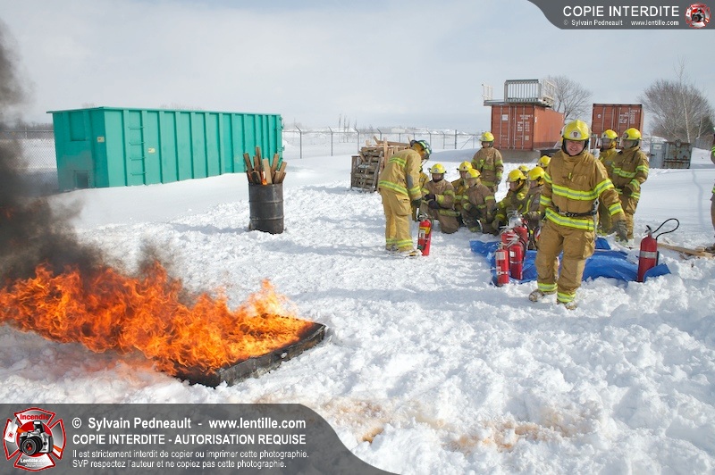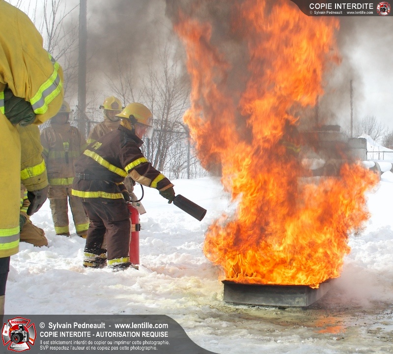 Le CFR de Saint-Hyacinthe a organisé une pratique d'extincteurs portatifs pour un groupe Pompier I. Les étudiants ont pu expérimenter avec les différents types d'extincteurs et se familiariser avec les effets sur différents types de feux.