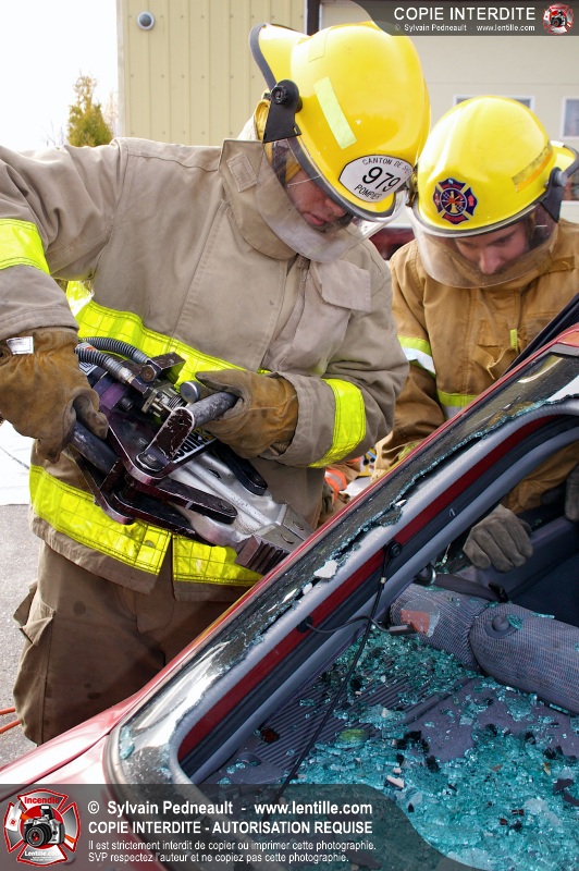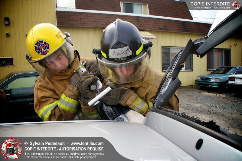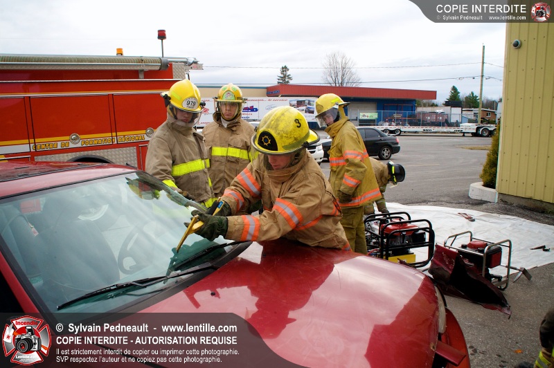 Des étudiants ont suivi une seconde partie de la formation pratique du cours de désincarcération au CFR de Saint-Hyacinthe. Ce cours fait partie du programme Pompier II de l'École Nationale des Pompiers du Québec.