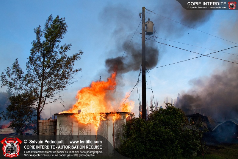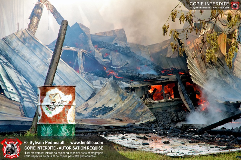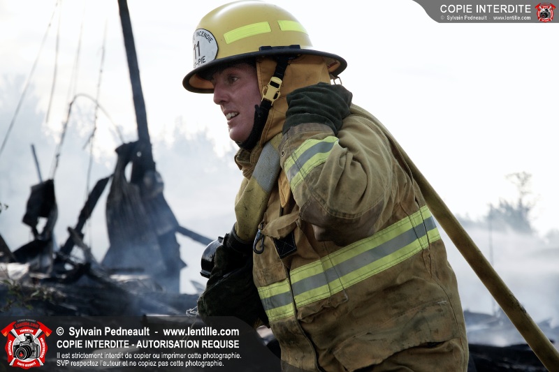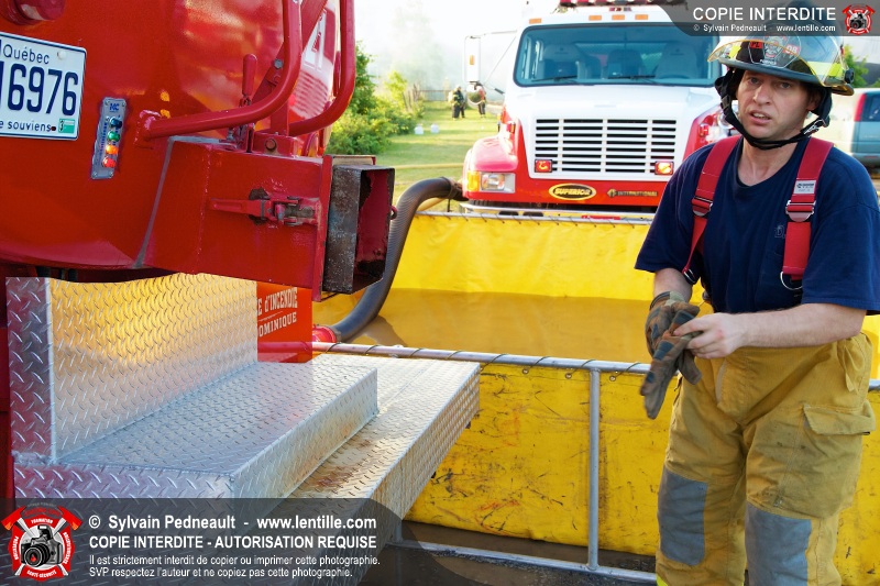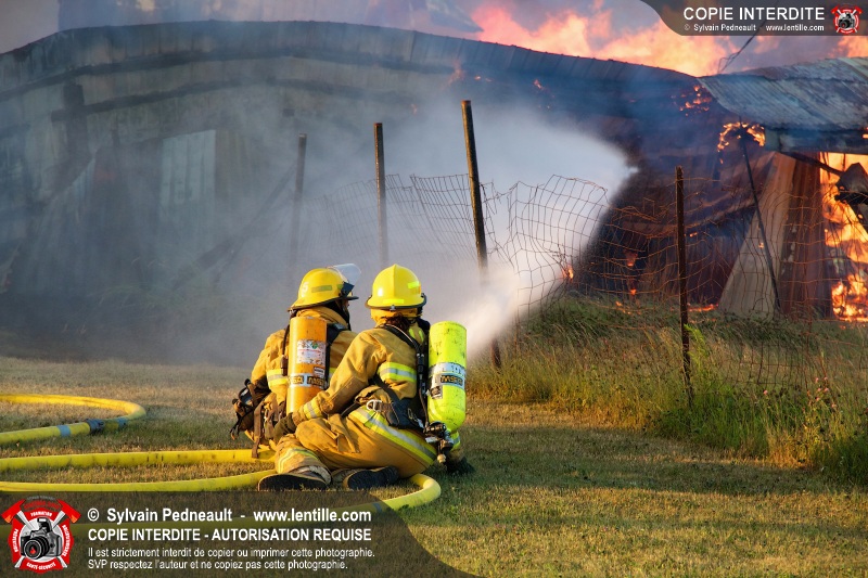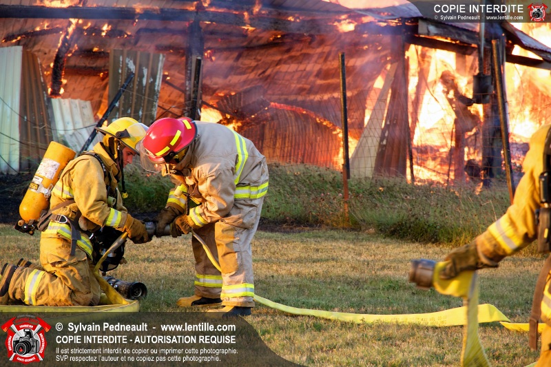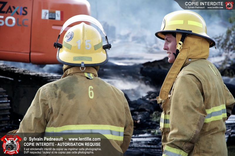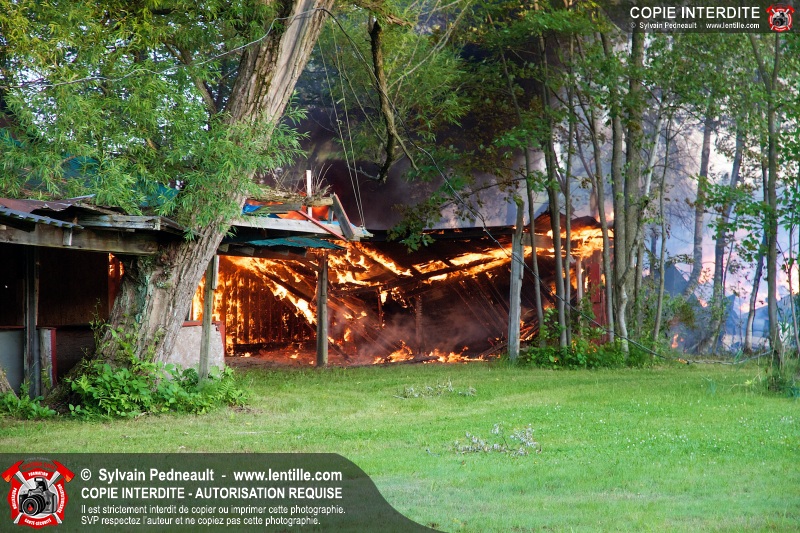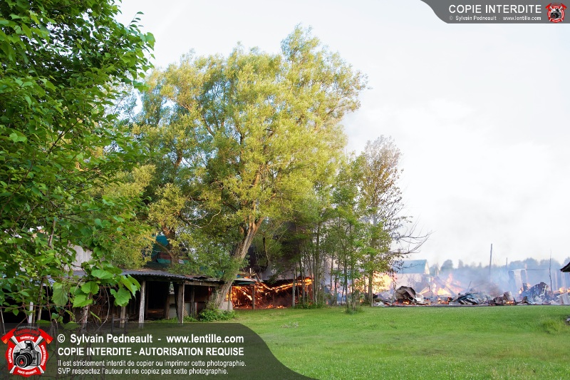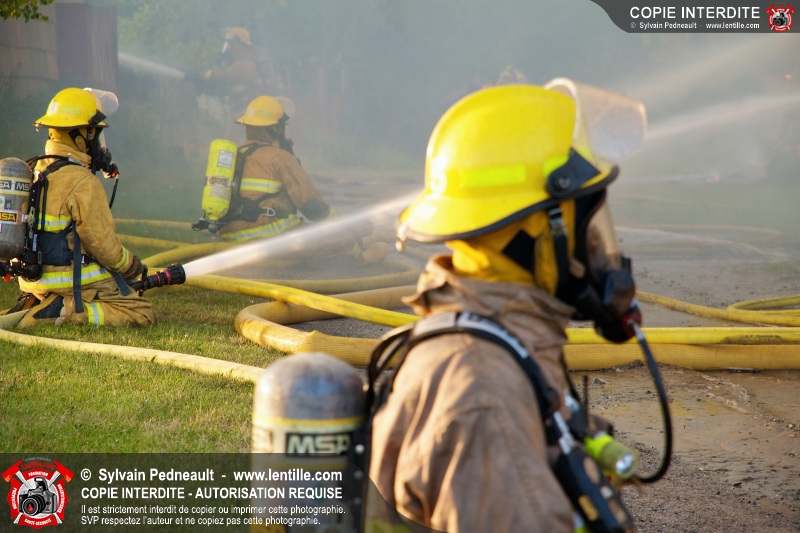 Un incendie a détruit une série de bâtiments sur un vaste terrain privé à St-Pie. Les pompiers ont fait appel à leurs collègues de plusieurs municipalités environnantes pour des obtenir des équipes et des citernes additionnelles.